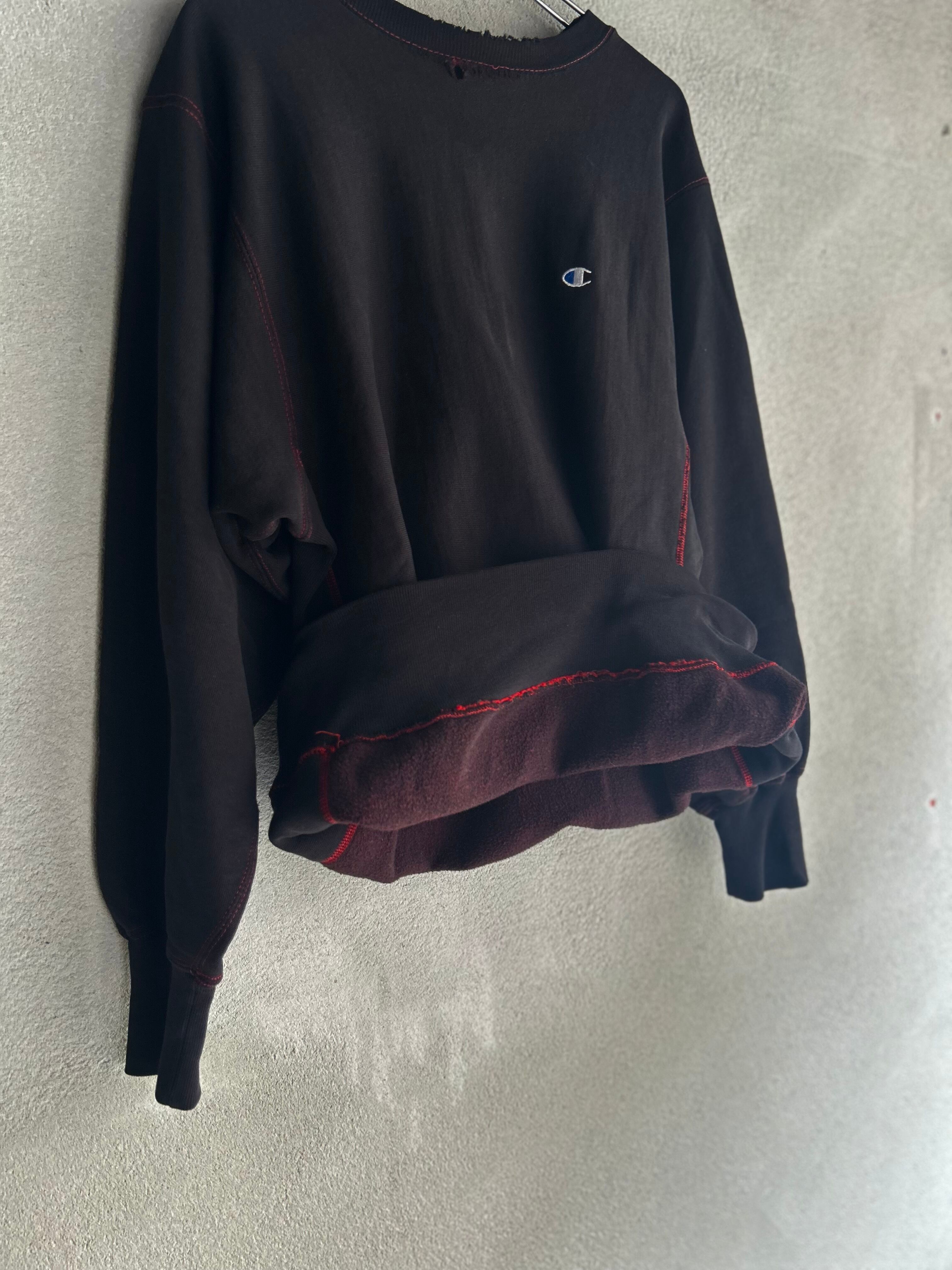 古着好きから絶大な人気を誇るアイテム。リバースウィーブこちらは、黒字に赤のステッチが最高にかっこいいです、、裏地も何故か赤。超へんてこリバースです。