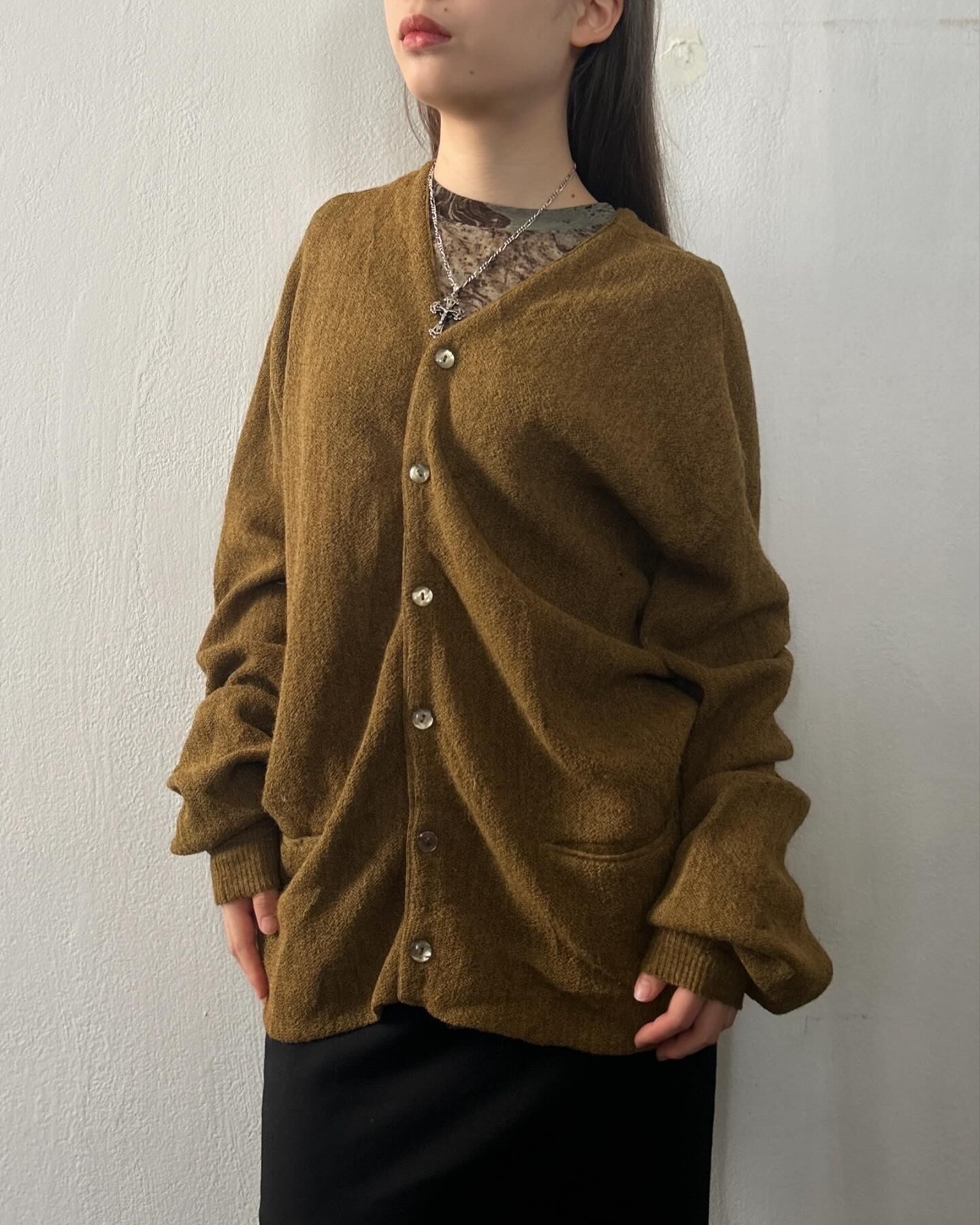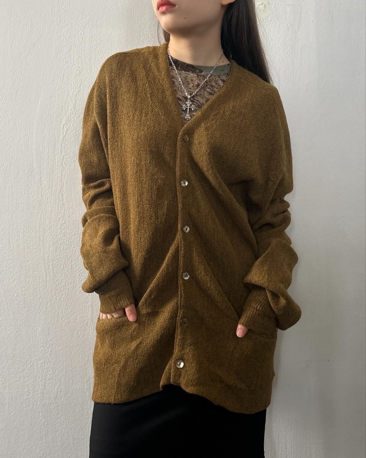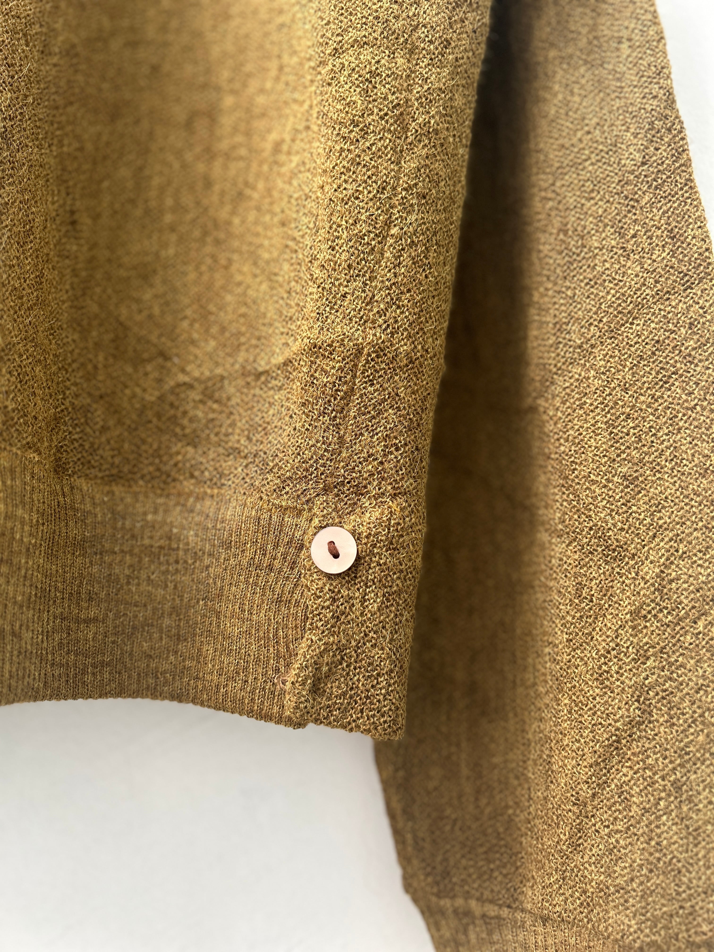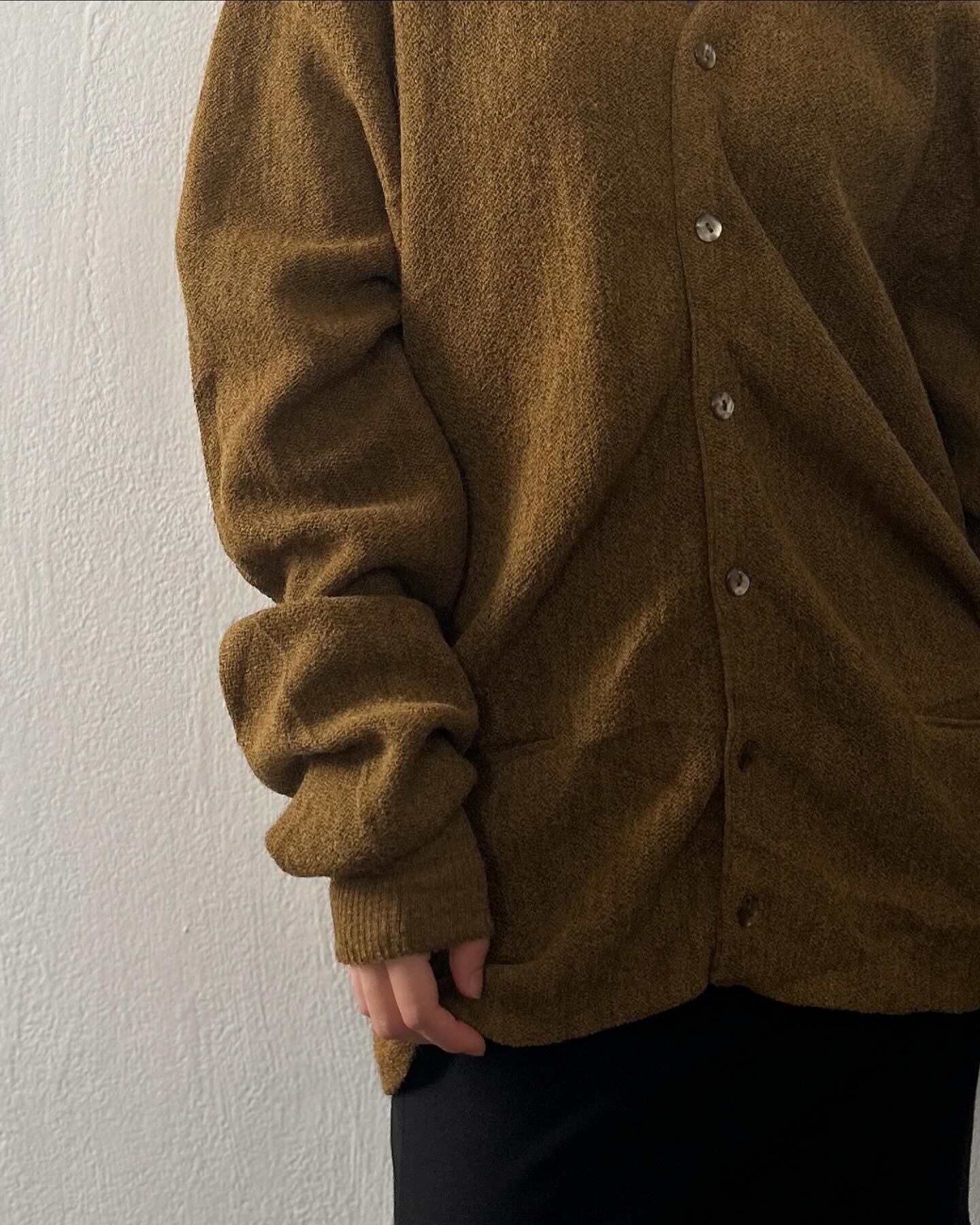 アルパカ100%のからし色カーディガン。
