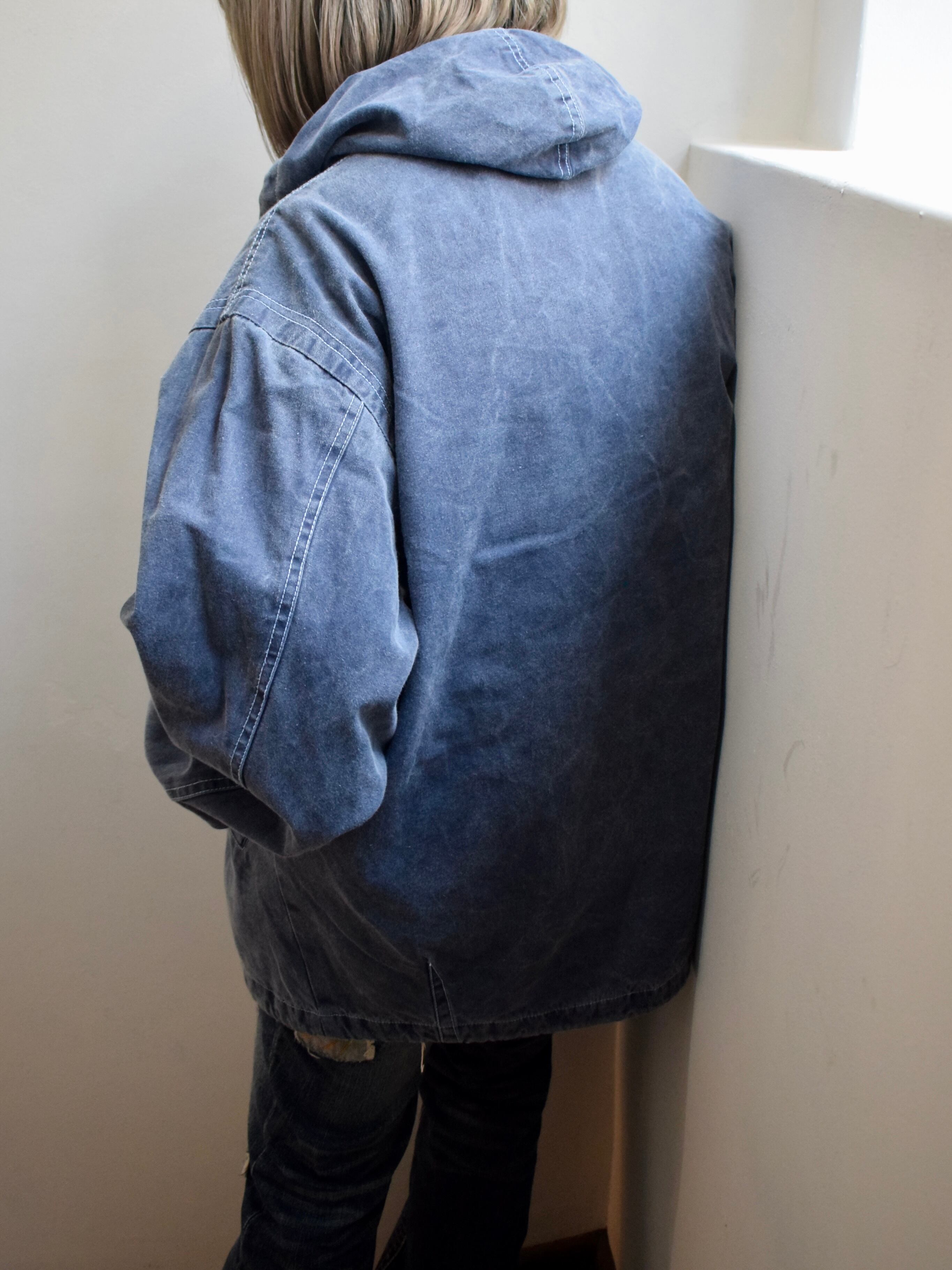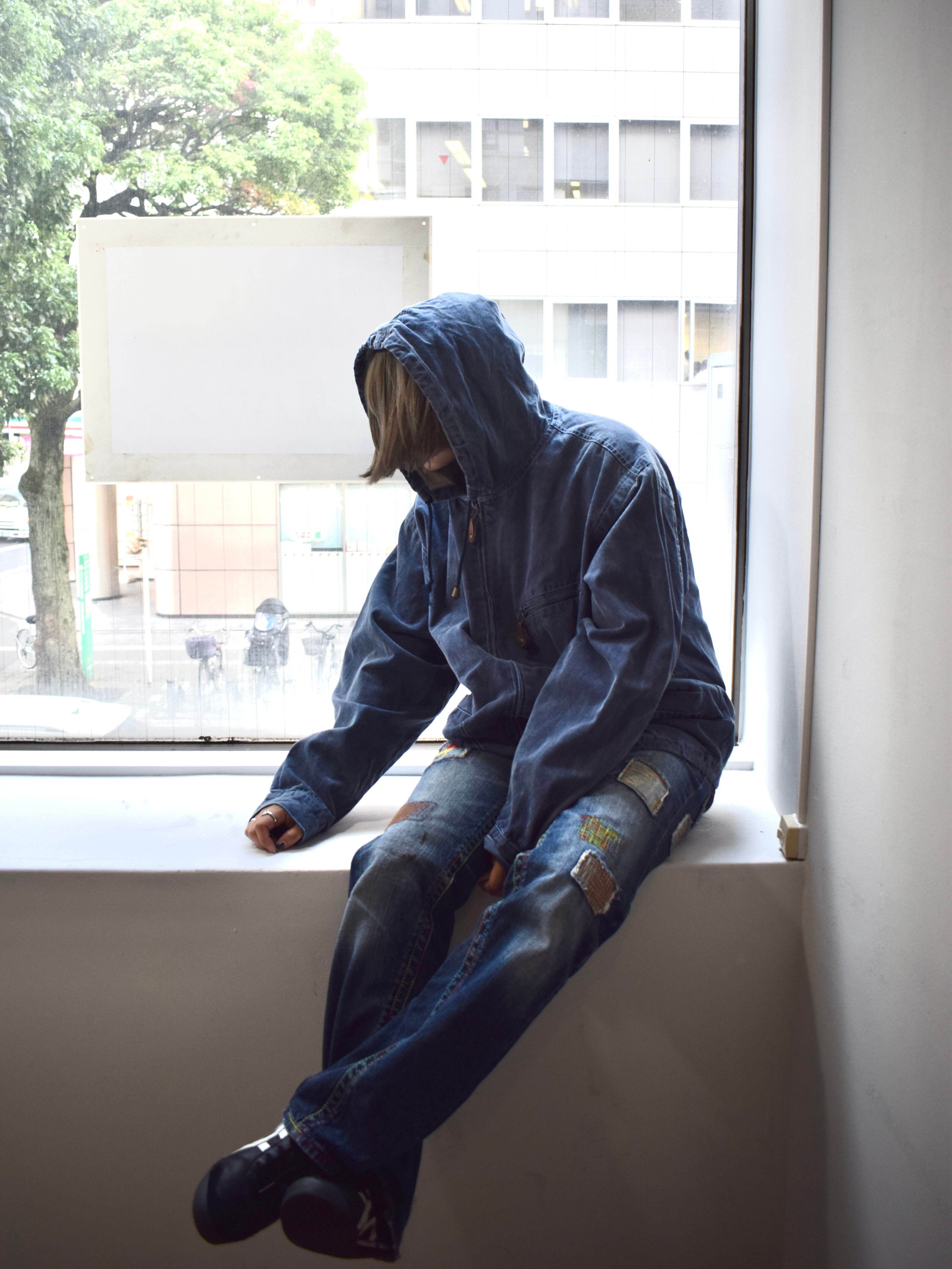 indigo blue zip up hoodie jacket