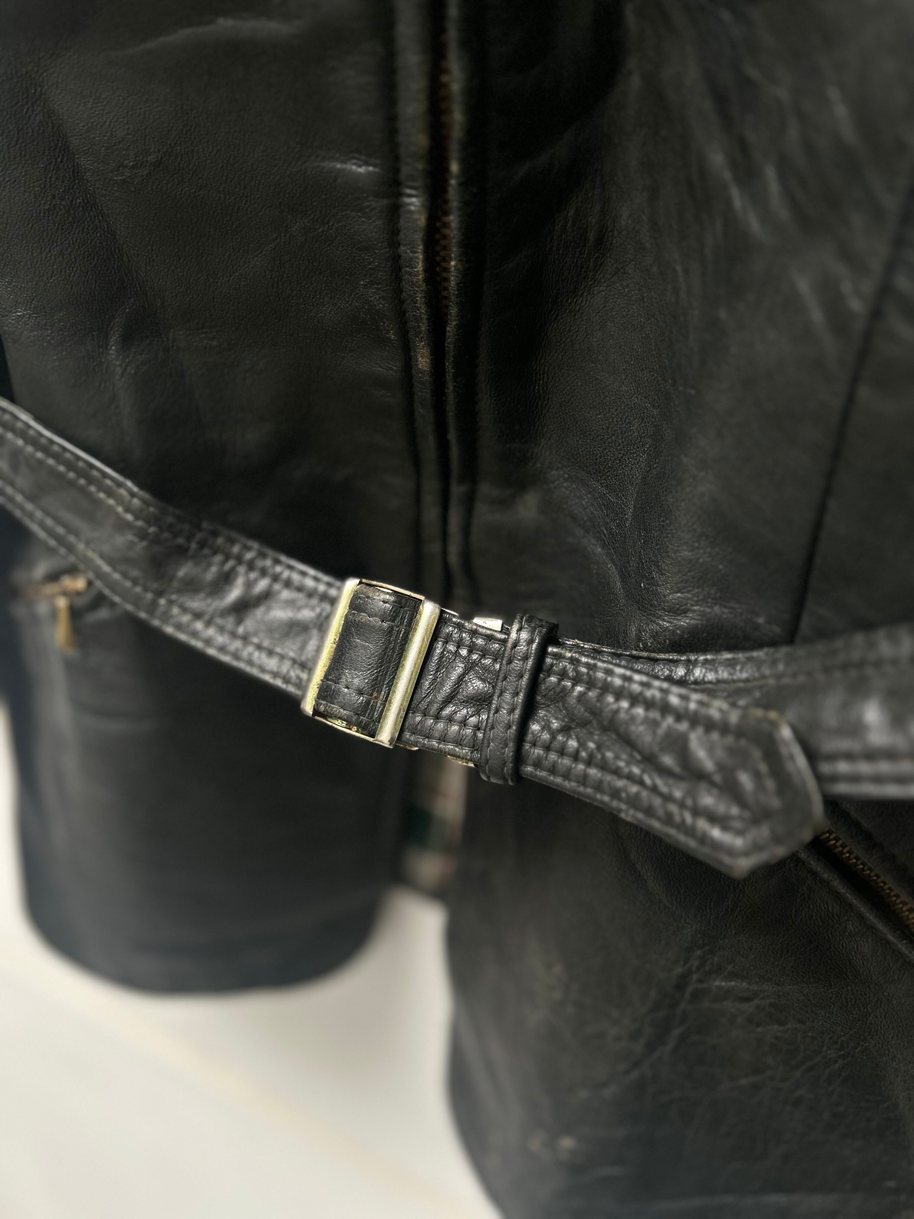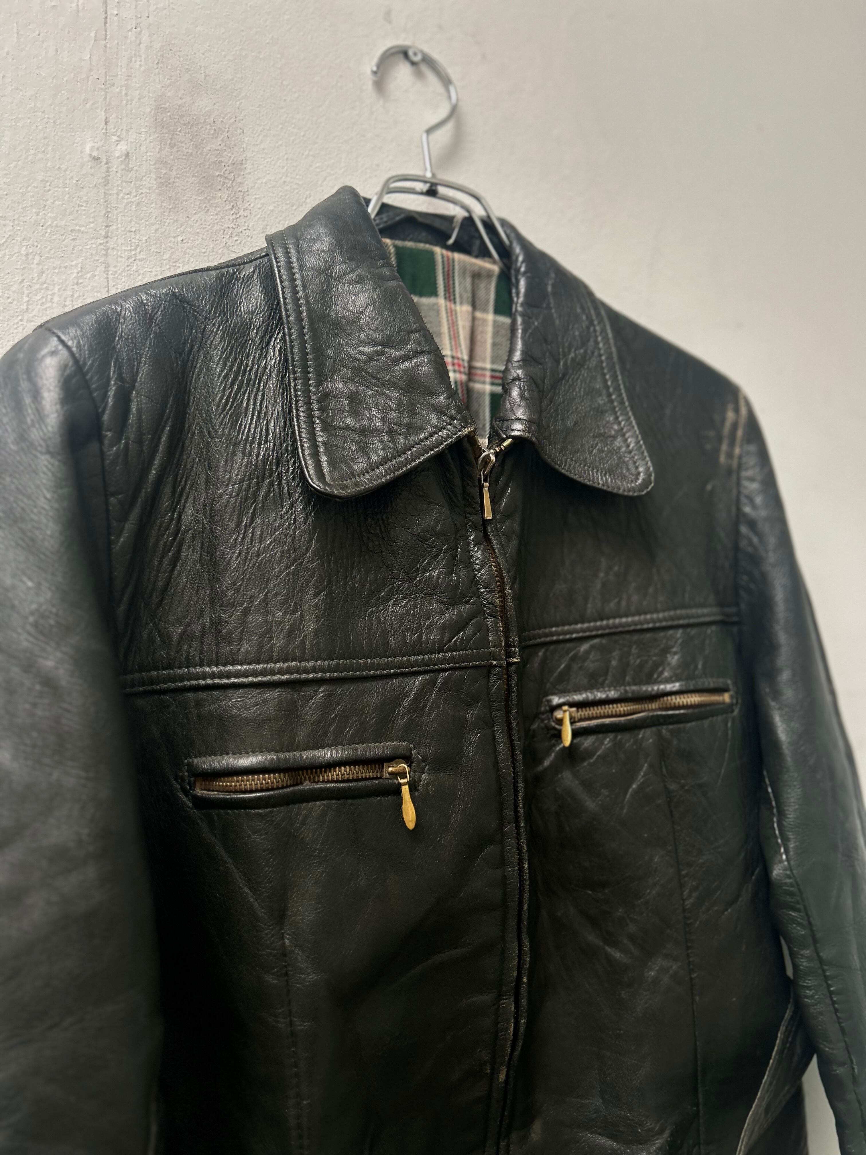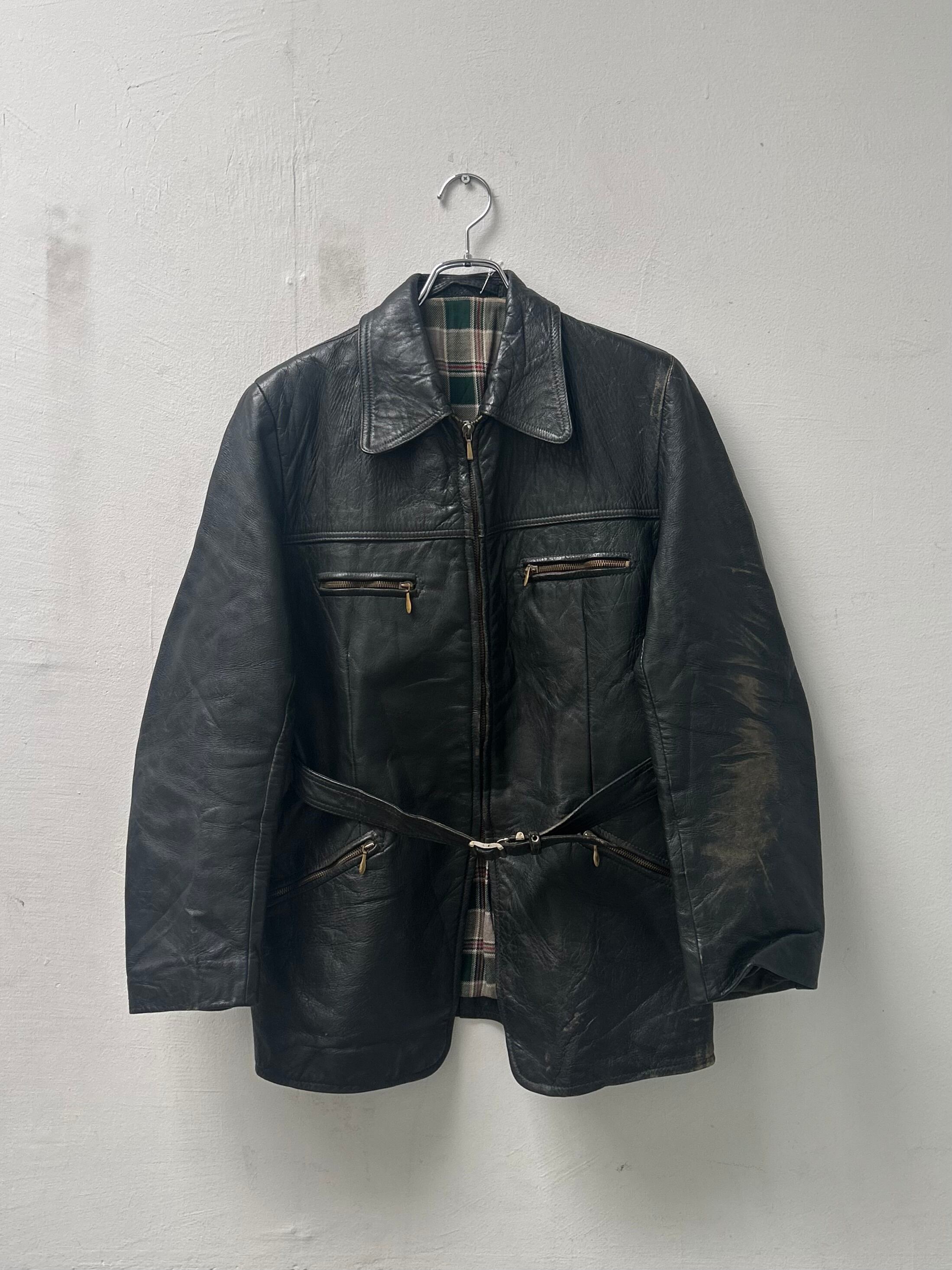 腰ベルト付きでスッキリとしたスマートなシルエット。裏地はBurberryやBarbourを彷彿とさせる、可愛らしいチェック柄です。Zipはデザイン性と耐久性に優れている、riri zipを使用しております。個人的に左側の袖のダメージがVintageならではの渋さを出していて好きです。