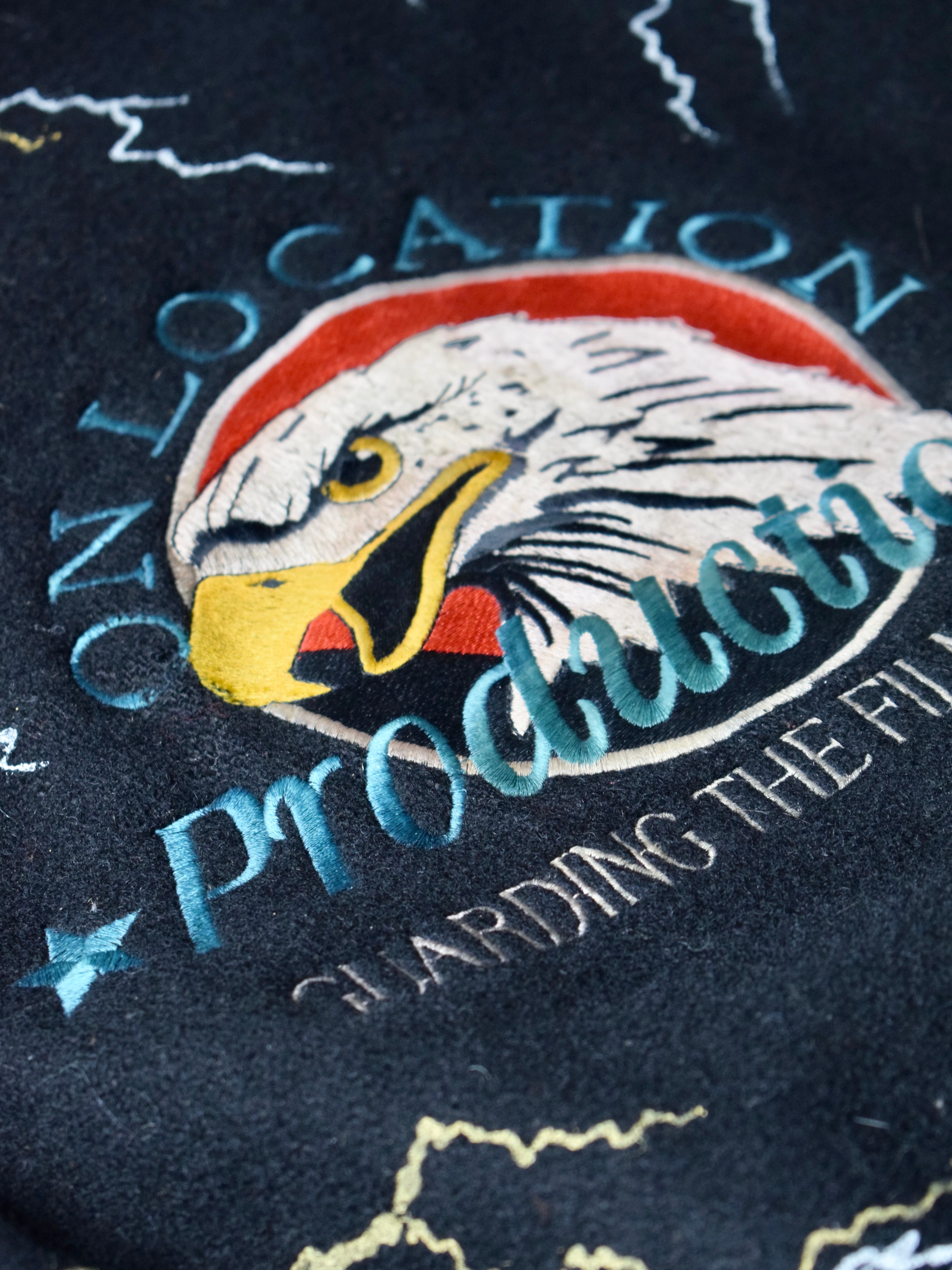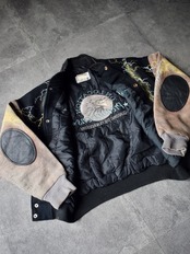 ただでさえ鷲の刺繍や襟部分やエルボーパッチ部分はレザーだったりと、かっこよさ満載のスタジャンですが、