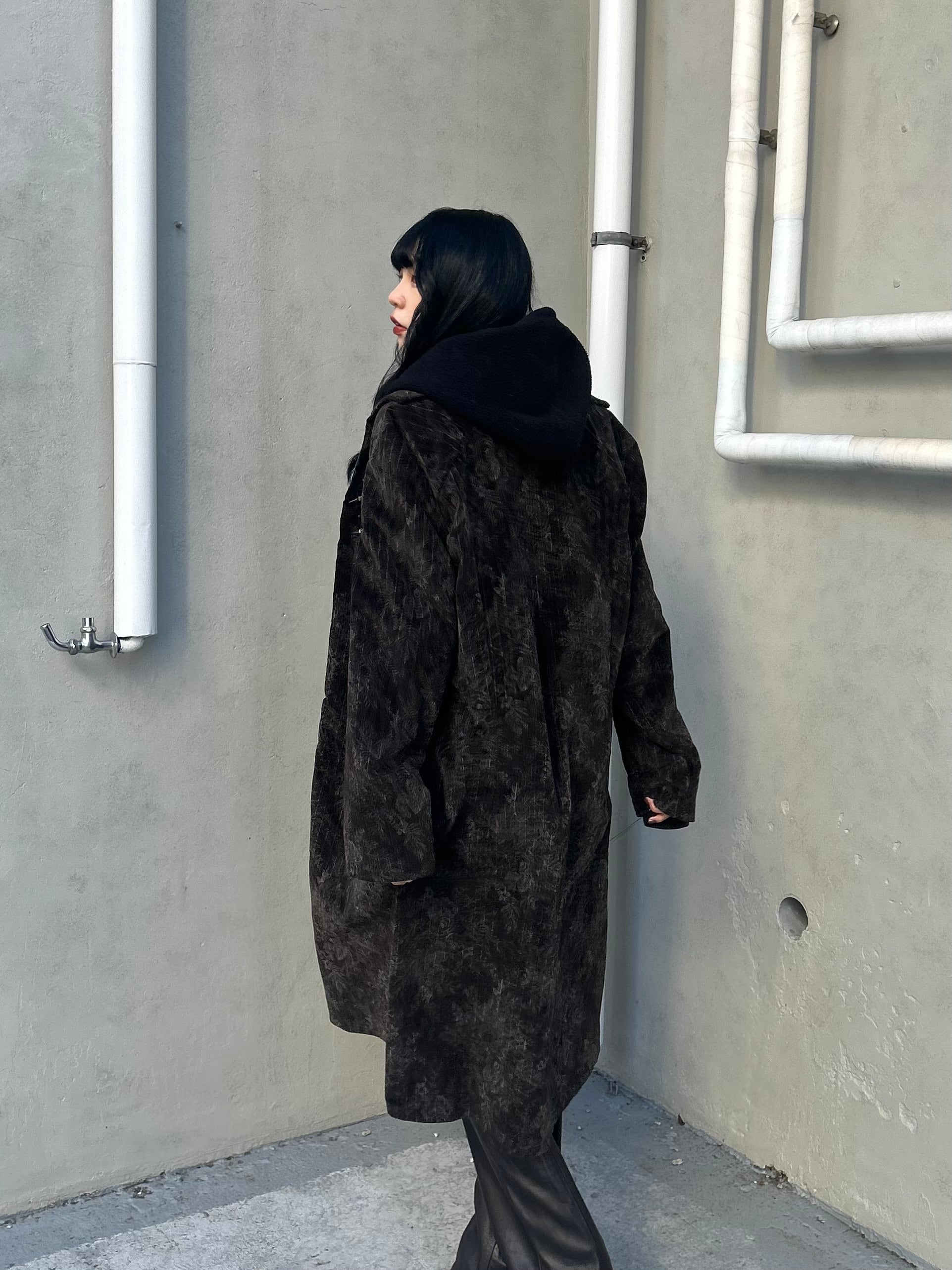 鮮やかなブルーカラーの裏地をちらっと見せる事でコーデ全体が華やかな雰囲気になります。表地には、控えめな花柄が全体にデザインされており、Louis Feraudらしいエレガントな雰囲気を演出しております。