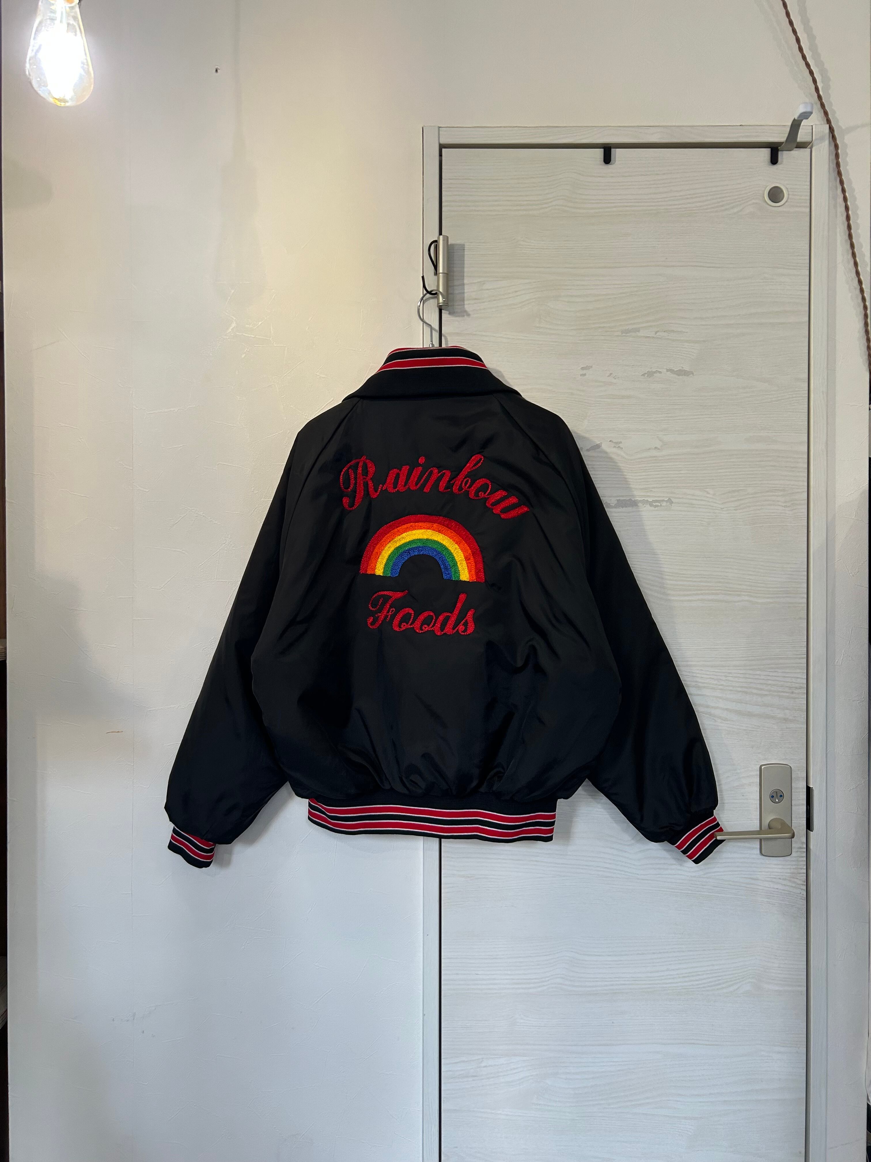 黒と赤の間違いない配色。背中には大きな虹の刺繍が入っていて可愛いですね。