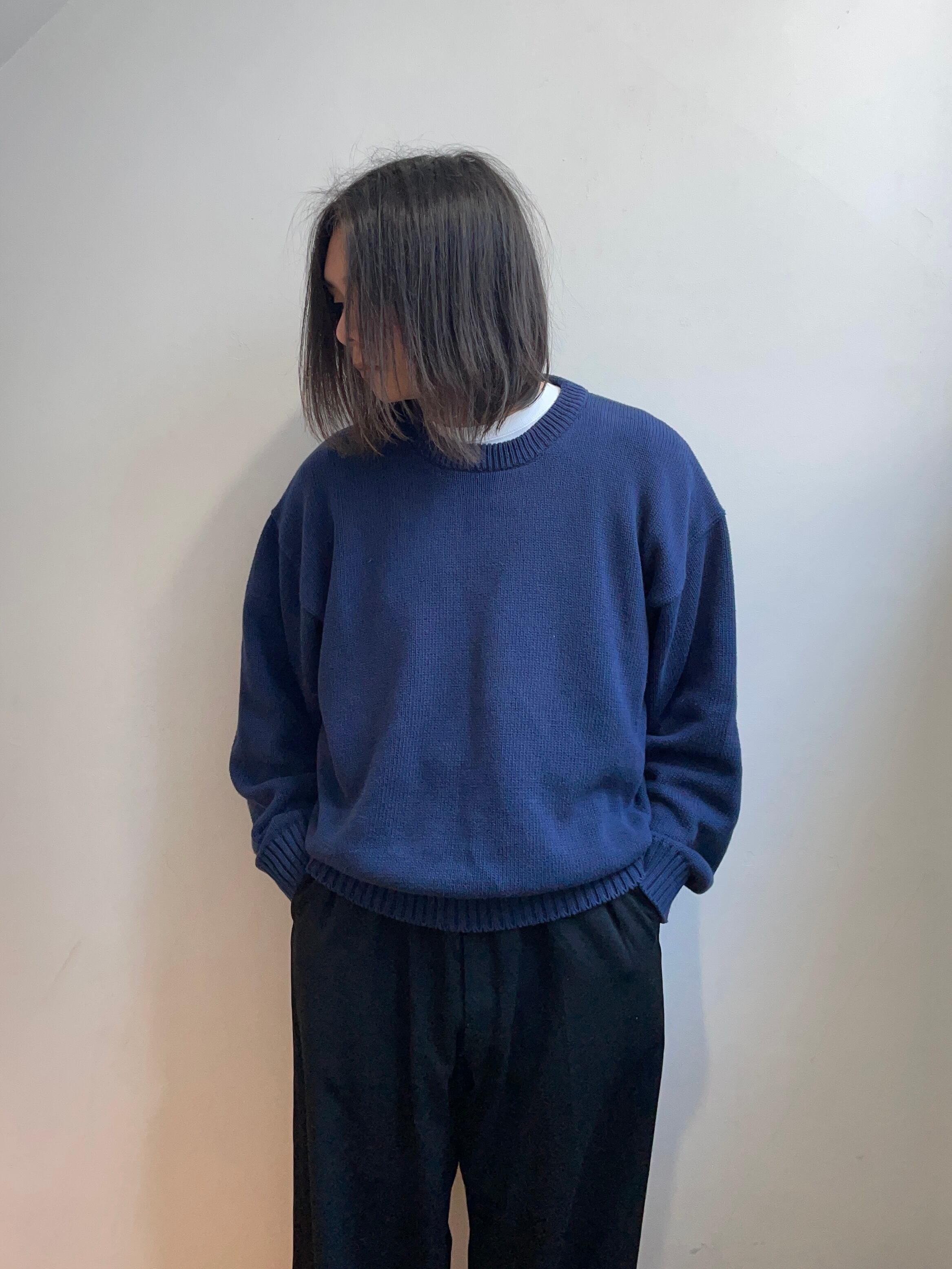 80~90s Eddie Bauer Cotton knit / 80~90年代 エディーバウアー コットンニット ニット 黒タグ ネイビー